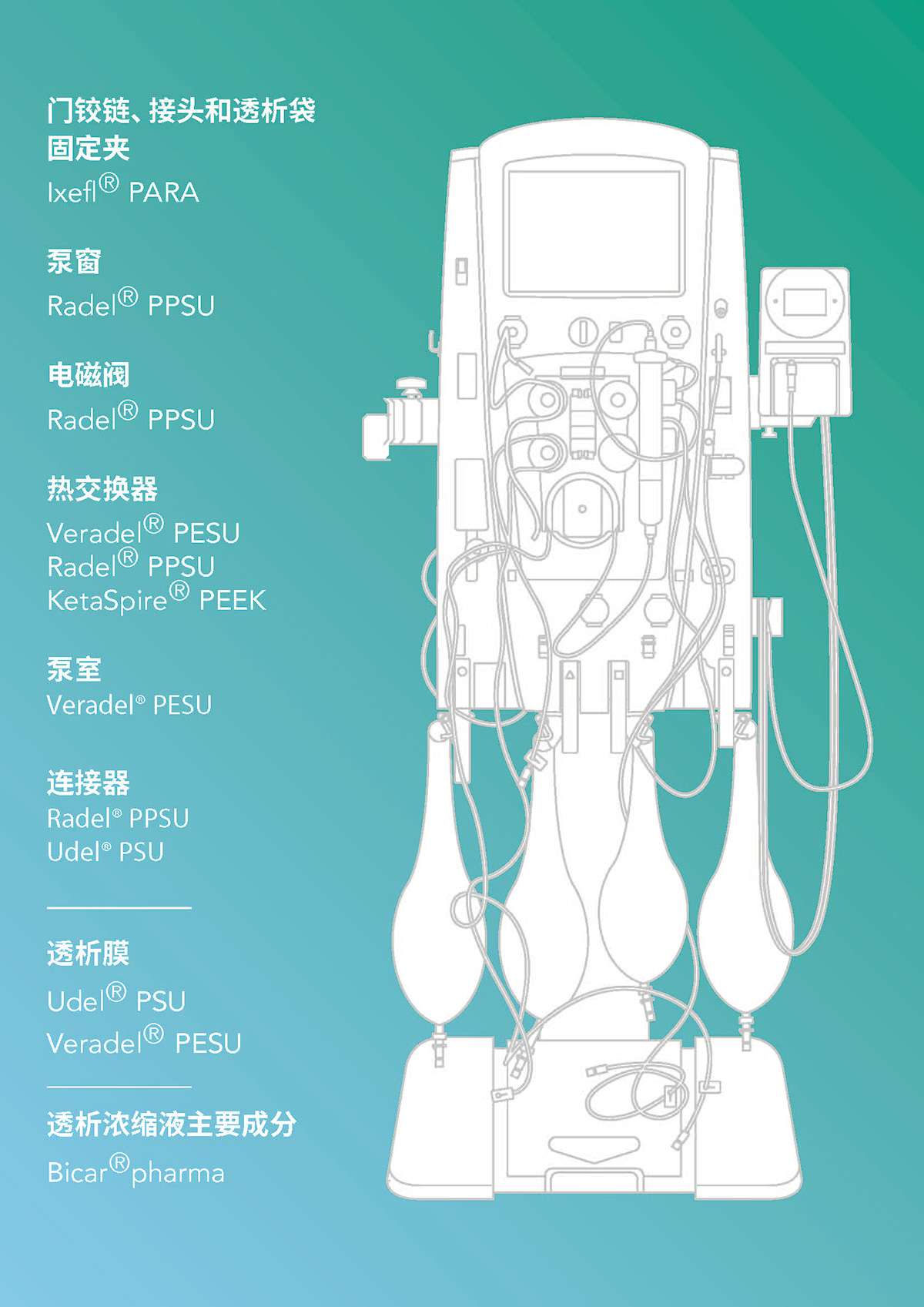 作为医疗保健行业可靠的材料供应商,世索科拥有超过30年的丰富经验,在血液透析领域,致力于帮助改善血透患者的生活质量。解决方案覆盖: