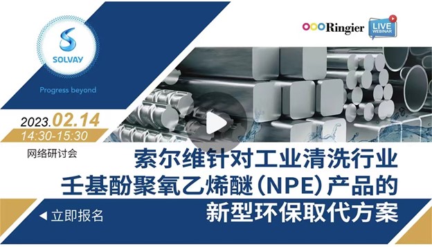 | 直播课件:索尔维针对工业清洗行业 壬基酚聚氧乙烯醚(NPE) 新型环保取代方案 | 下载 |