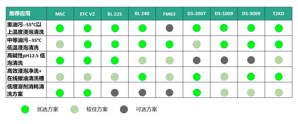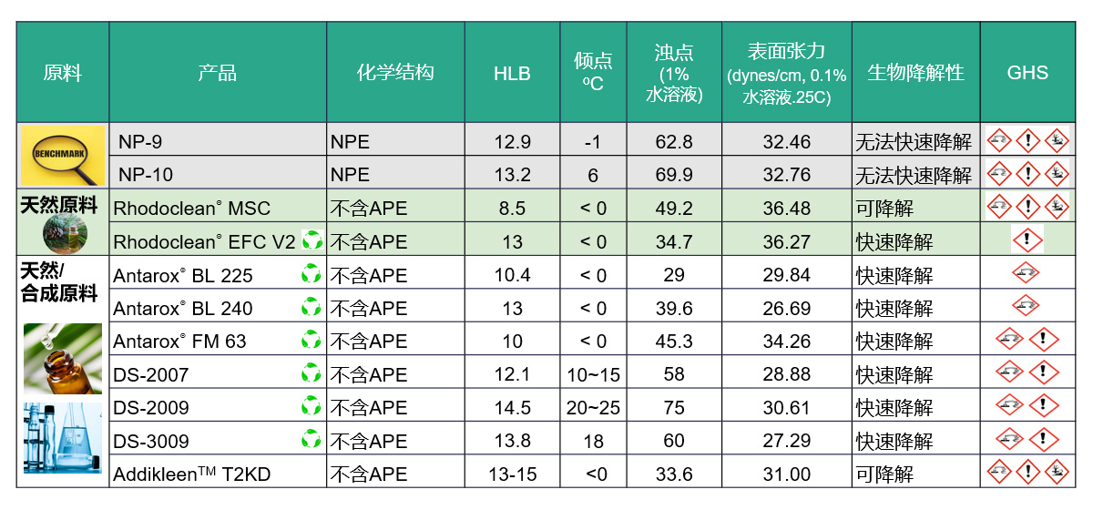 在拥有和NPE近似甚至更优的清洗能力的基础上,世索科全新不含APE的 Addikleen™ T2KD以及Rhodoclean™ EFC V2还表现出了极其优异的低温清洗性能以及低泡性能,从而帮助配方师更好的面对低温清洗的市场趋势。